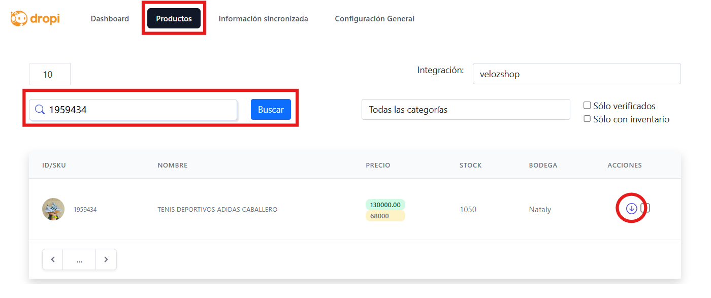 Pesquise o ID ou nome do novo produto que deseja importar