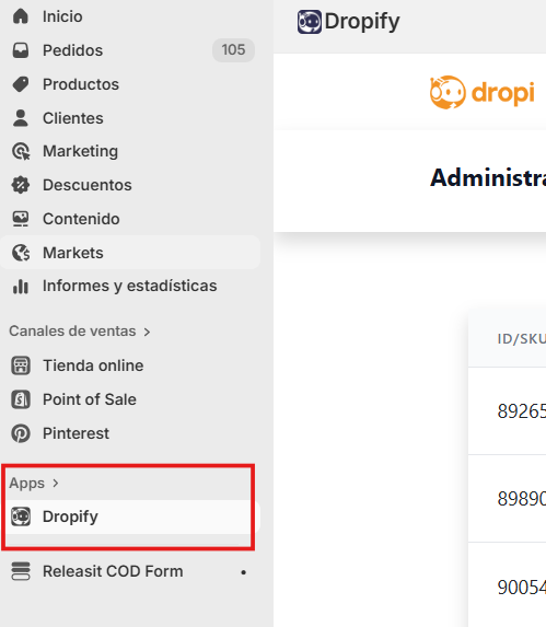 Selecione o app Dropify