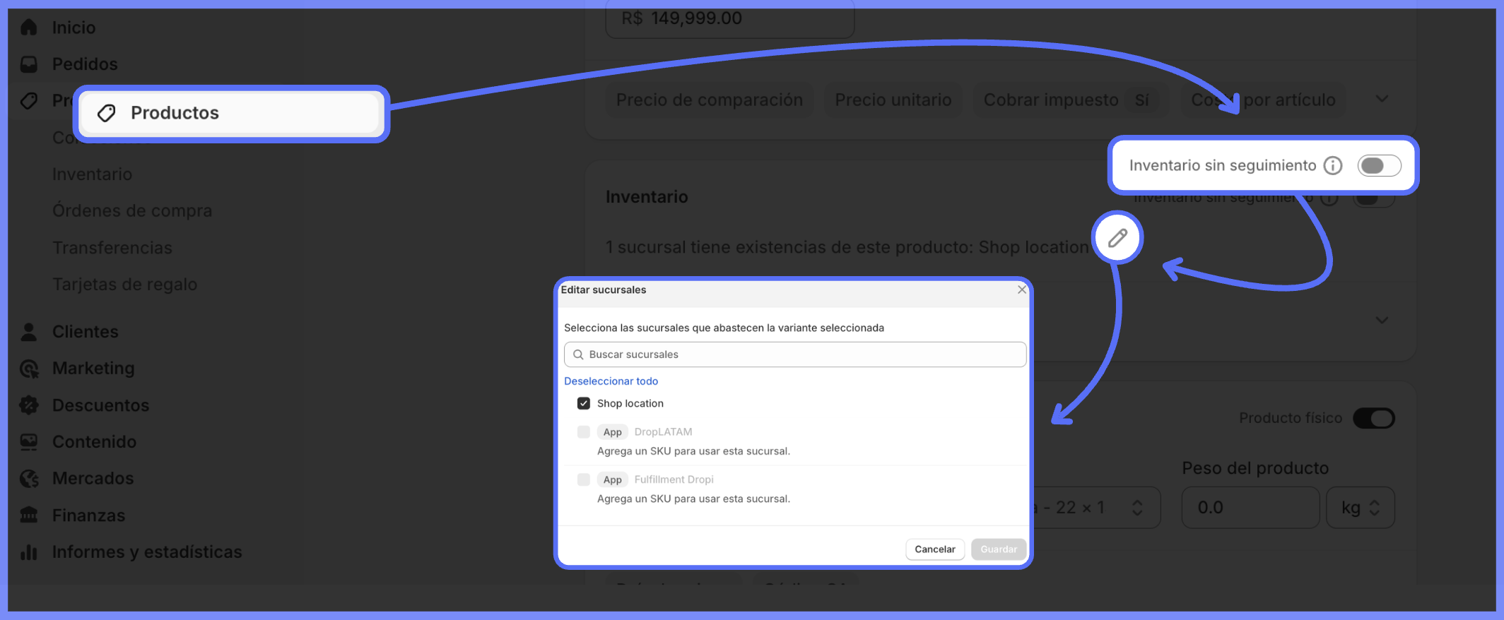 Por que ocorre o erro de estoque? A integração entre Shopify e DropLatam funciona em apenas um sentido: da Shopify para a DropLatam. Quando o acompanhamento de estoque está ativo na Shopify, ele pode gerar conflitos e bloquear o envio dos pedidos.