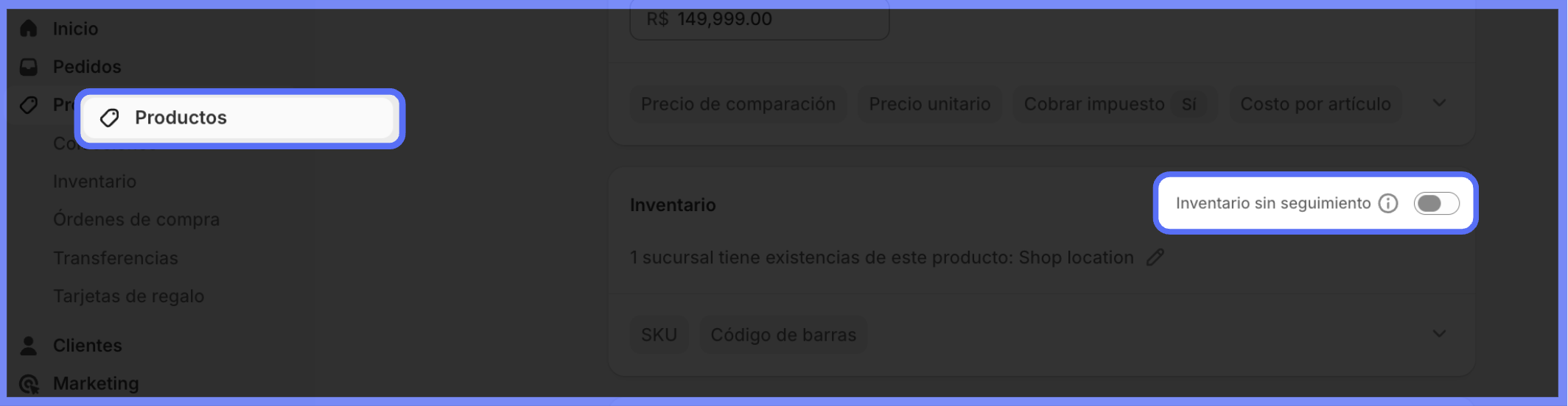 Desative o acompanhamento de estoque