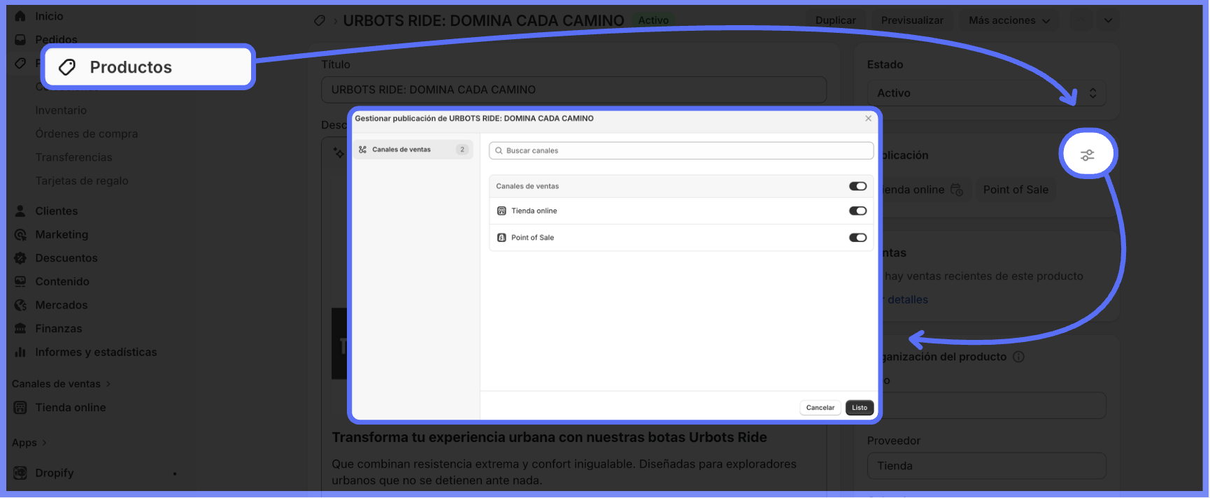 - Dentro da Shopify, acesse Produtos e clique sobre o produto em questão