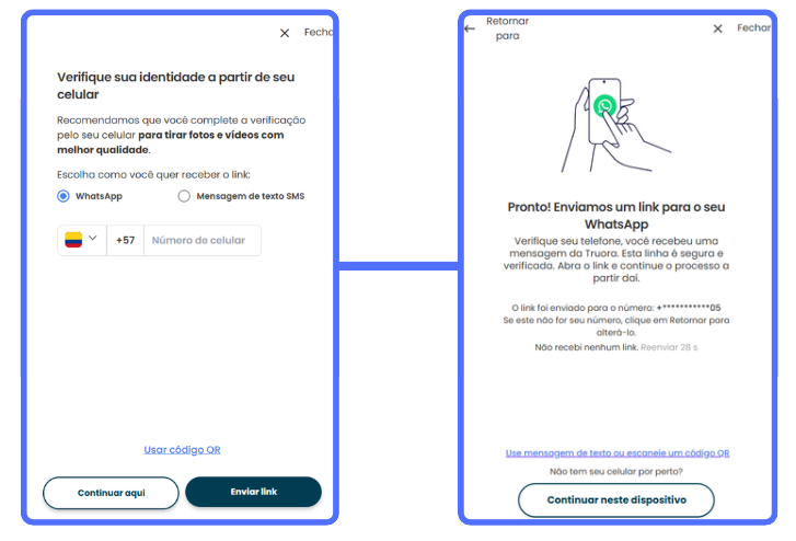 - Selecione como deseja receber o link de verificação: SMS ou WhatsApp