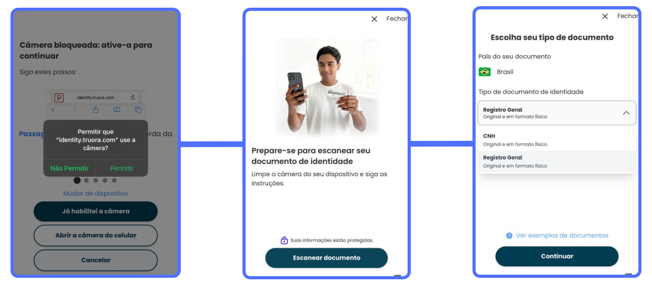 - Clique em "Escanear documento" e selecione o tipo de documento:
