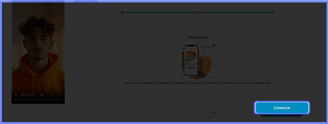 Volte à tela inicial da plataforma e clique em "Comenzar validación" (imagem 5)