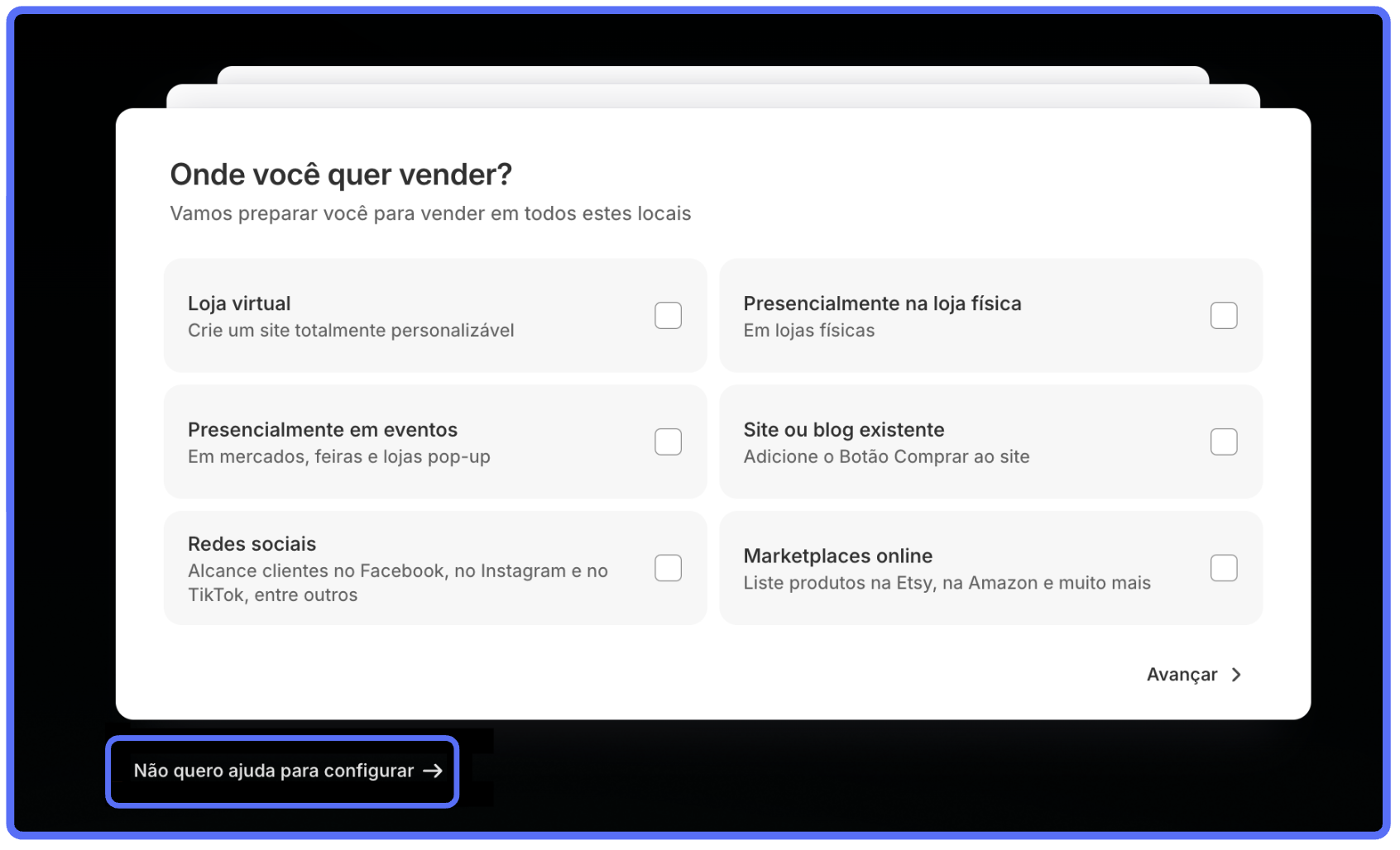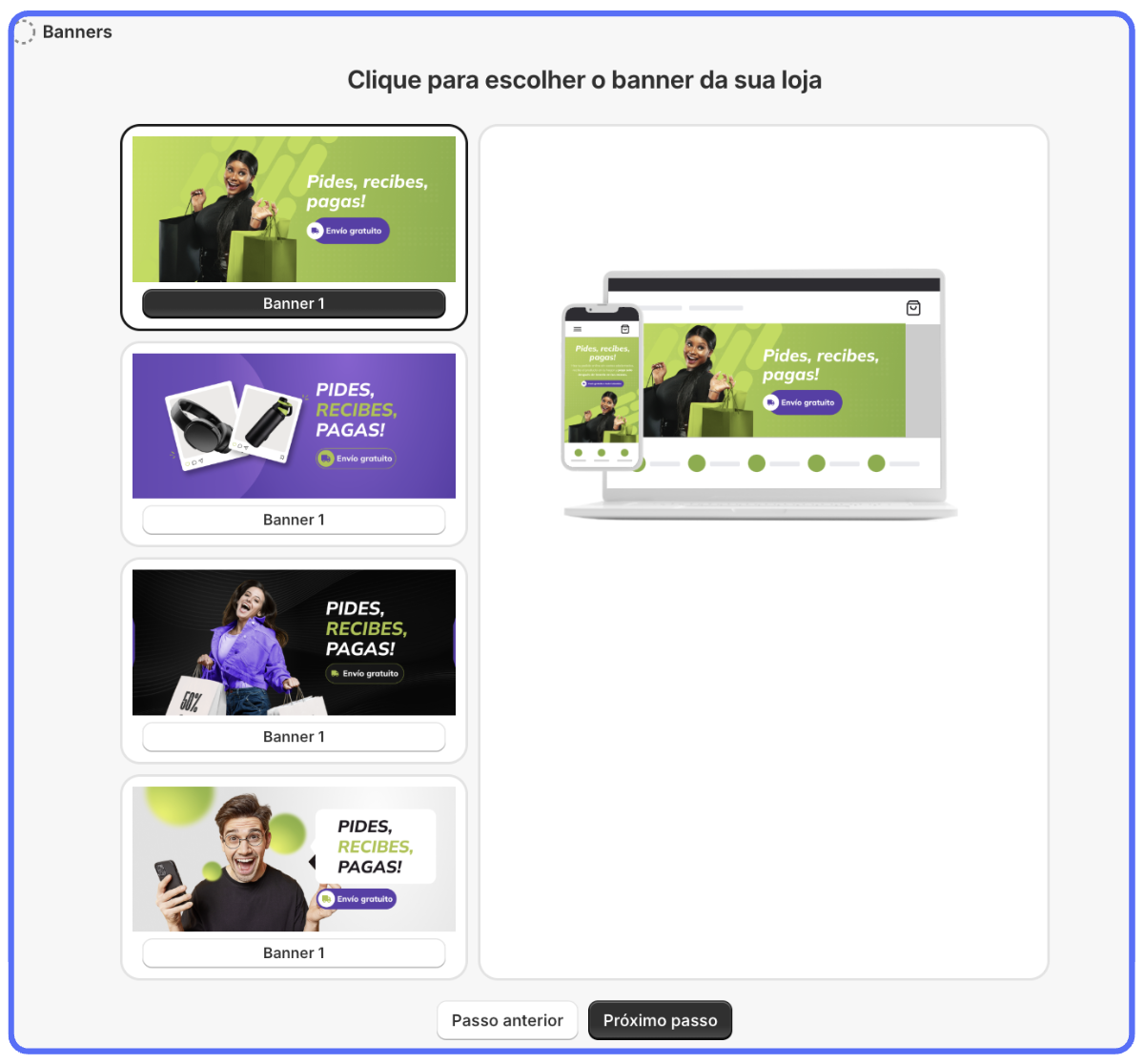 - Retorne à página do Criador de Lojas e clique em "Continuar" (imagem 7)
