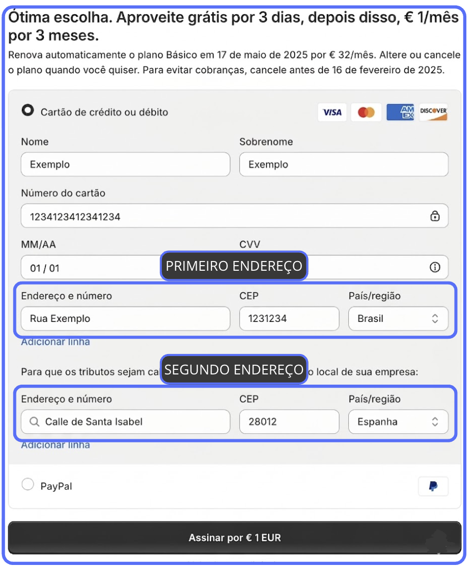 - Primeiro campo de endereço: endereço de emissão do cartão