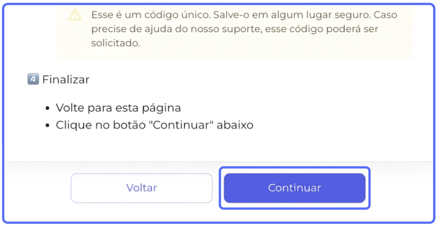 - Cole o código no campo solicitado dentro do app e clique em "Validar Código" (imagem 10)