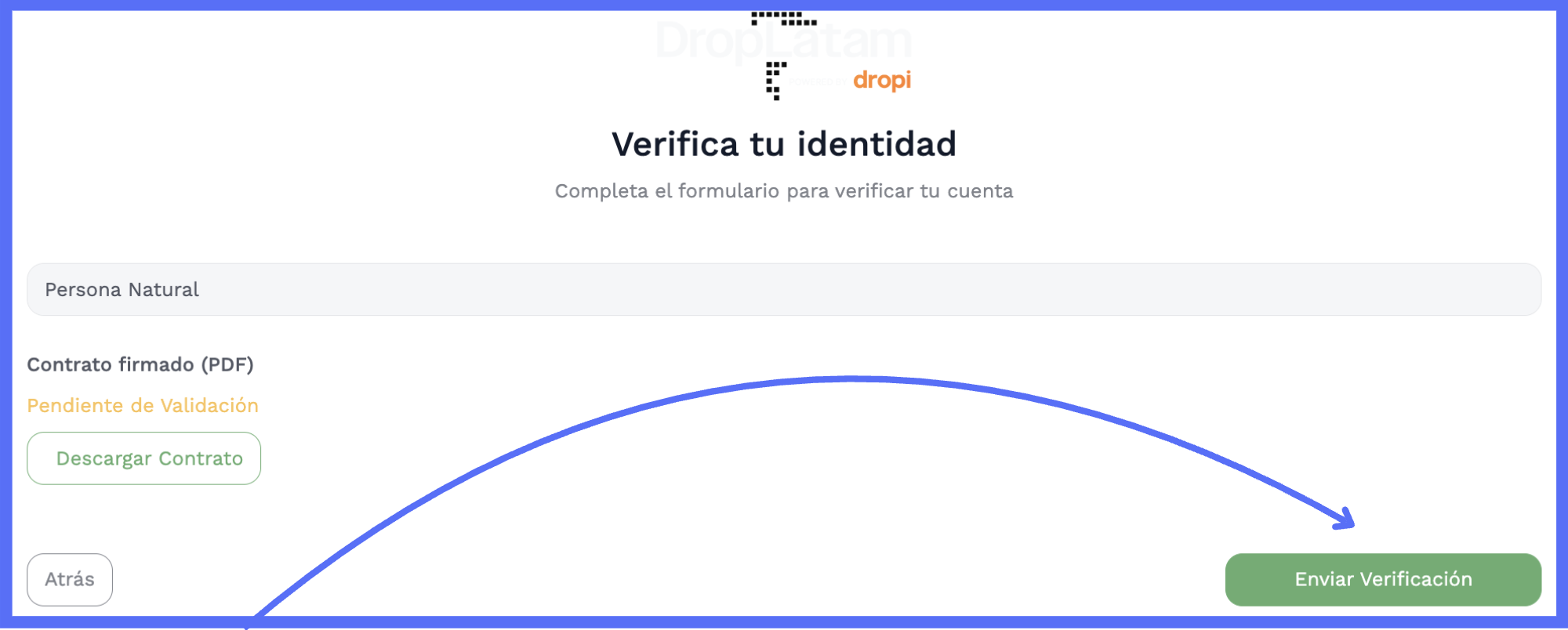 Como concluir o processo? Com todos os campos preenchidos, clique em "Enviar verificación".