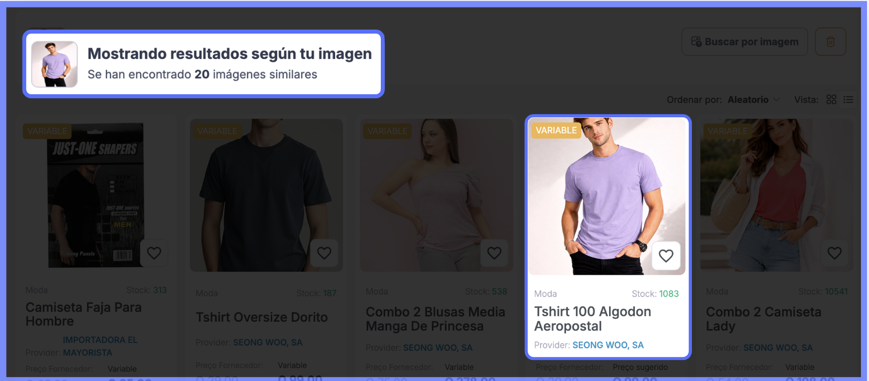 A plataforma exibirá os produtos disponíveis iguais ou semelhantes à imagem enviada