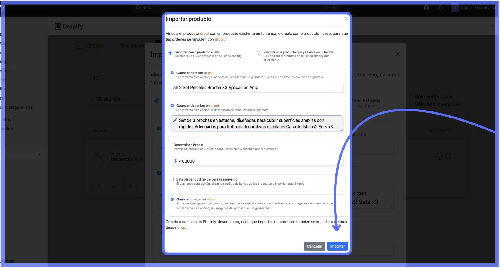 Etapa 2 — Vinculando o produto DropLatam ao produto Shopify