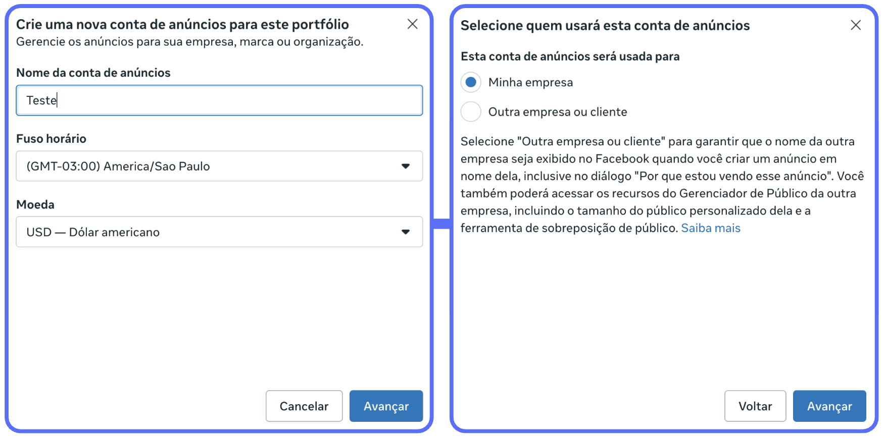 Clique em "Adicionar" > "Criar nova conta de anúncios"