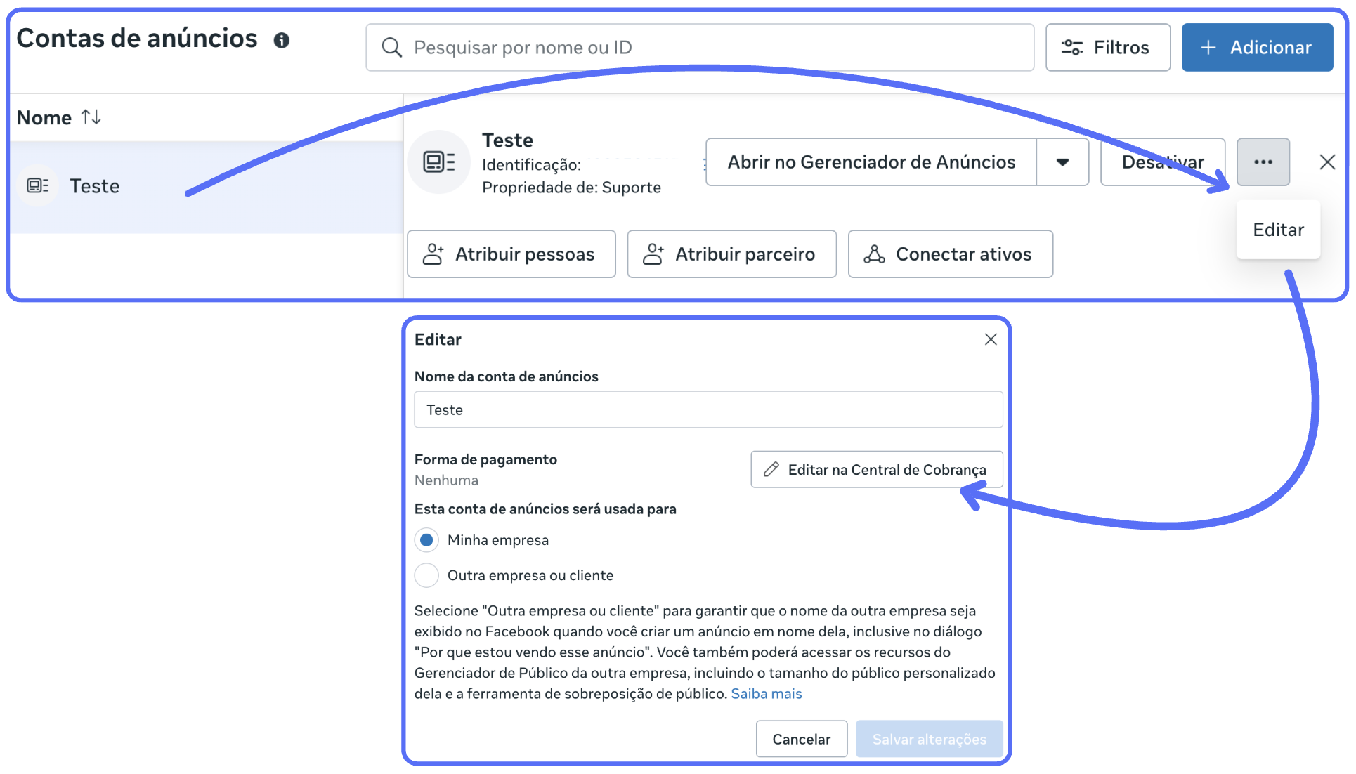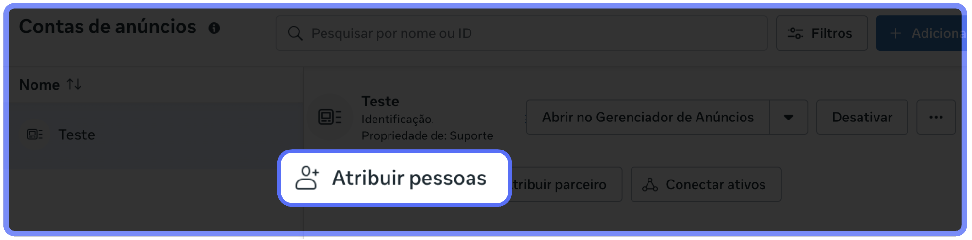 - Ainda nas configurações da conta de anúncios, clique em "Atribuir pessoas"