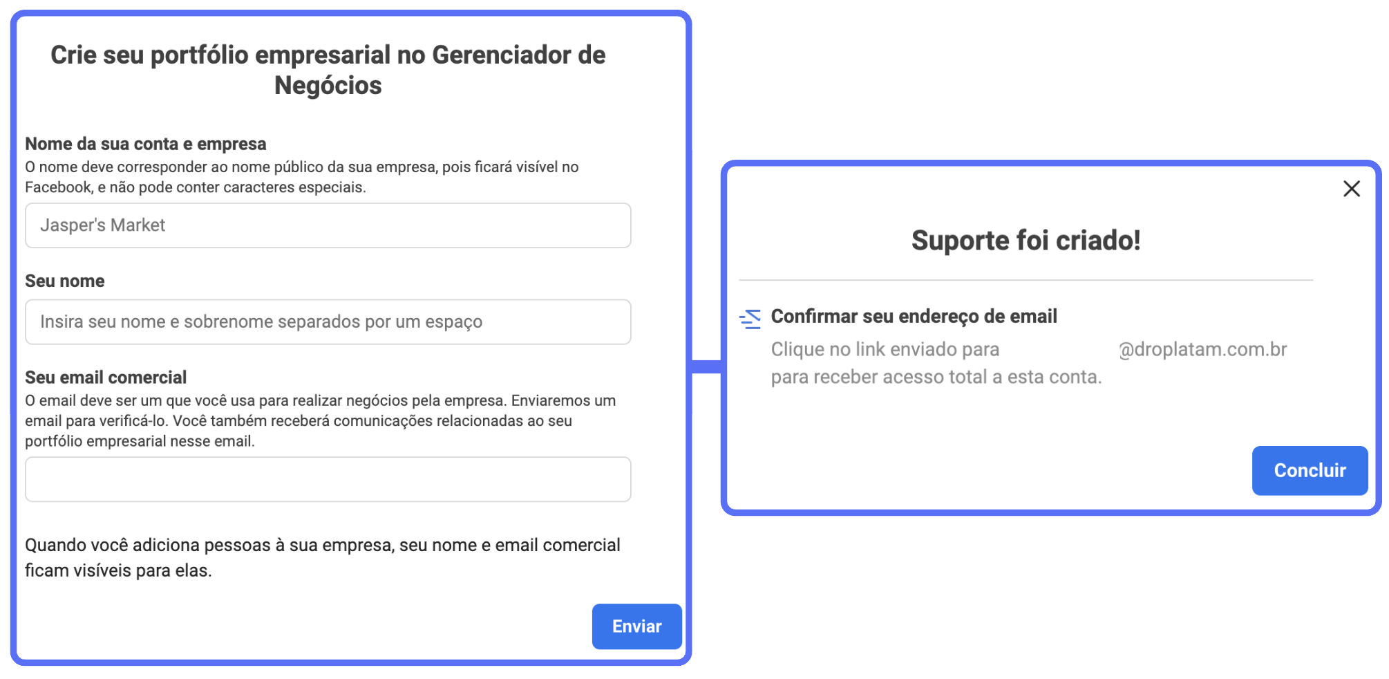 - A mensagem "Crie seu portfólio empresarial no Gerenciador de Negócios" será exibida diretamente na tela